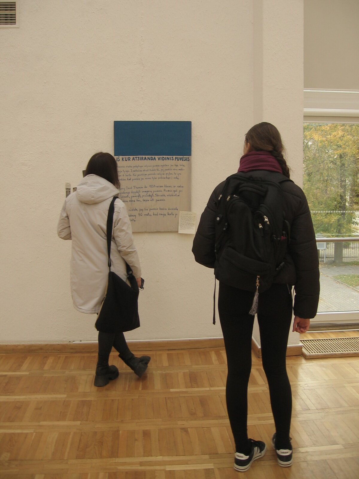Mokyklos trečiame aukšte eksponuojami pradinio kurso mokini...